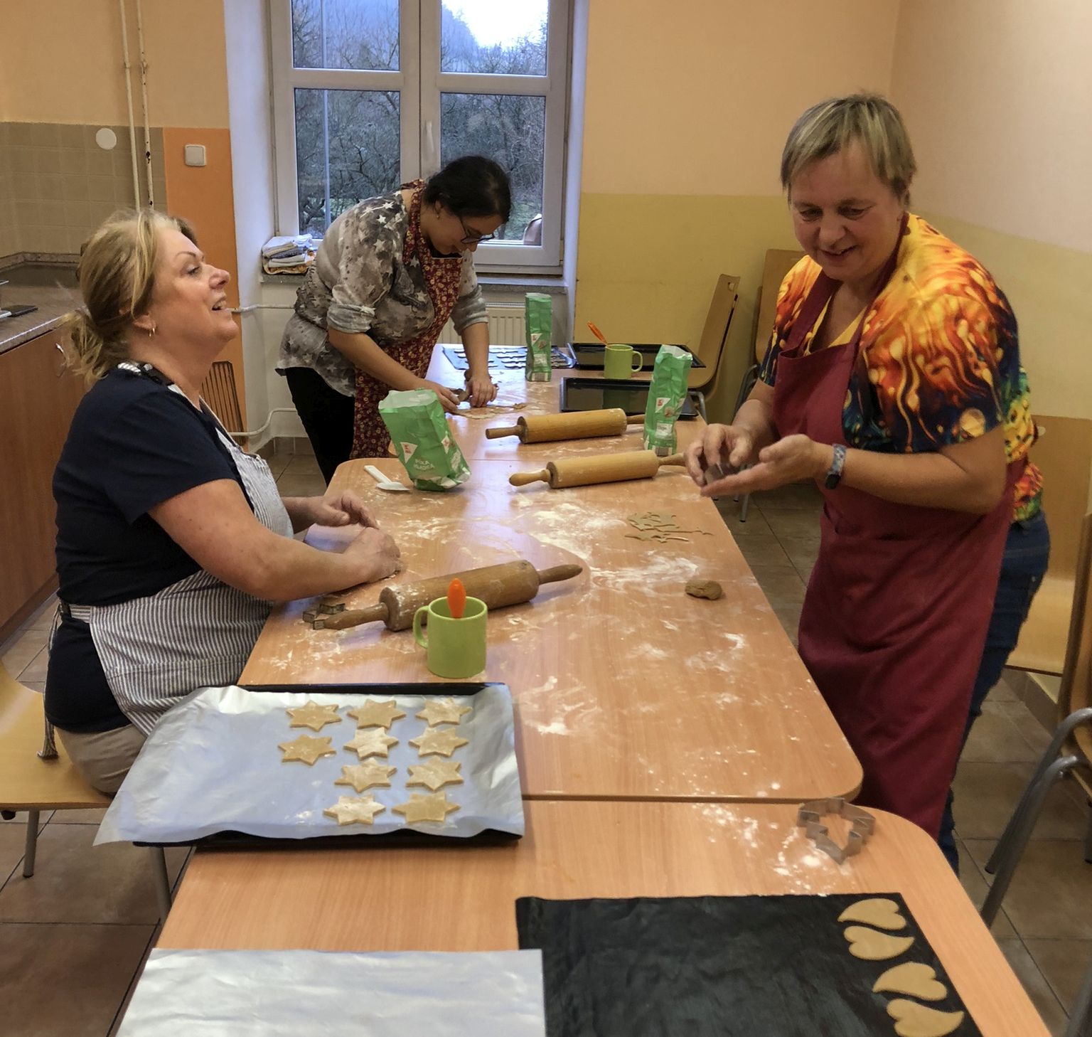 Pro šikovné tvůrce paní asistentky připravily perníkové těsto a bílkovou polevu z materiálu, který zajistila škola. Pečení probíhalo 4. prosince 2025 ve spolupráci s děvčaty z osmé třídy, která příchozím vysvětlila, co mají dělat a se vším jim pomáhala. Každý si nazdobil dva perníčky, jeden si odnesl a jeden věnoval. Z darovaných perníčků jsme udělali 120 balíčků s přáním k Vánocům. Přáníčka nám ozdobily děti z II.C.